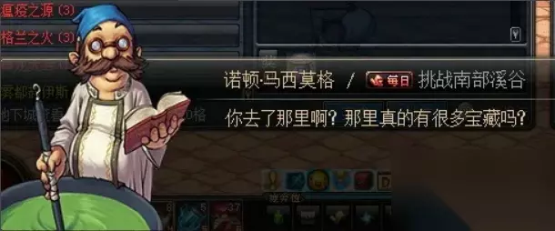 南部溪谷任务攻略: 活动期间,玩家在NPC诺顿·马西莫格处接受【挑战南部溪谷】的任务。 此任务,只有在活动期间开启,并且活动结束后,任务消失。 PS:玩家在进入到游戏之前,接好任务。