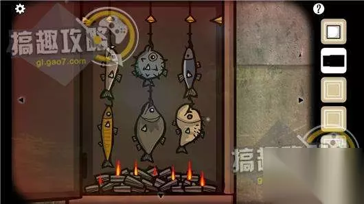 最后会拿到6只鱼,将这6只鱼平均下重量按照上图的排列方法挂在烤箱里,用火柴点燃。