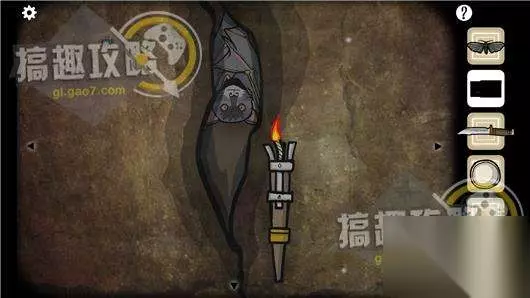 用火柴将火炬点燃看到裂缝里的蝙蝠。