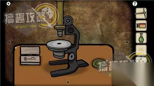 将液体倒入显微镜旁边的模具里,拿到钥匙。