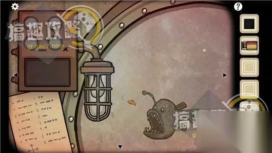 查看玻璃罩,玩个小游戏让鱼从右边的管进来。
