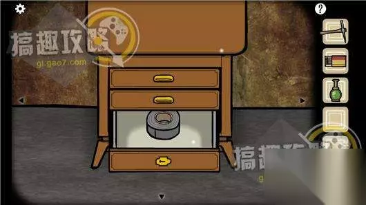 用钥匙打开第三层抽屉,拿到胶带。