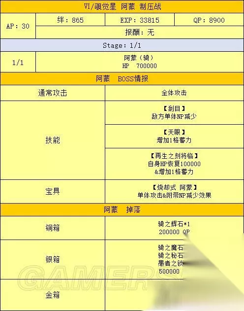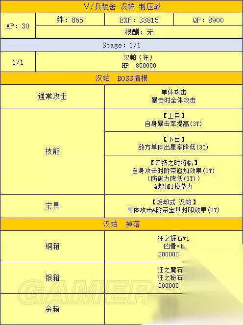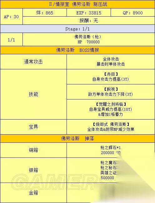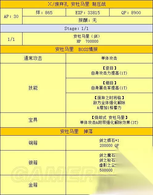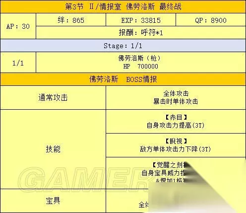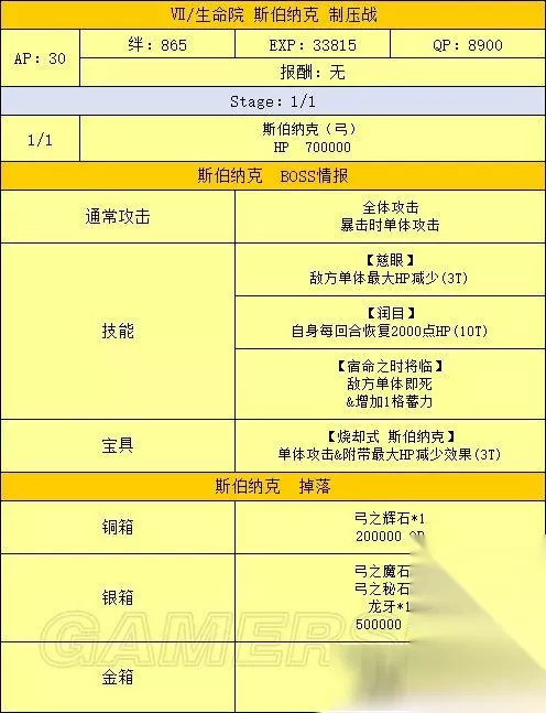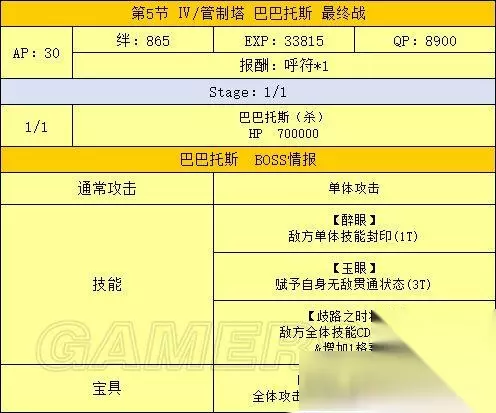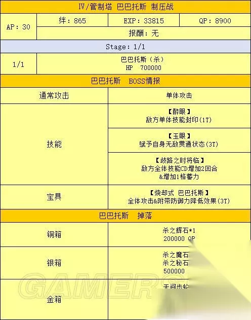 活动流程 活动准备 1、打通第七特异点 本次活动需要通关第七特异点才能进行 2、准备从者和礼装 为达成尽快击杀魔神柱的目的,请尽可能提高主力输出的羁绊等级,推荐从者详见下文 从者选择 主力输出/打手 泛用 最优选:B阶金时 次选:其余B阶单体,黑贞 克制 最优选:克制职阶单体 次选:克制职阶光炮 选择顺序:泛用最优选》克制最优选》泛用次选》克制次选 之所以这样排主要是因为B金时50的自充使其可以带黑杯配单孔明原地起爆,而克制职阶单体中有50自充的从者非常少 其中一个还是R金时 辅助 孔明:50充能,30%攻击,50%爆伤,宝具启动机 梅林:20充能,20%攻击,100%爆伤,50%红卡,暴击启动机,可惜因为上线时间太短,想找到有练度的很难 南丁:50%红卡,红卡打手的选择之一 海伦娜:20充能,20%全色卡,不无小补 莫扎特:瞬间50星,配合没有集星的B阶也能刀刀暴击 安徒生:全面的低星辅助,可惜没有团队充能+启动慢是硬伤 举了几个例子,其余辅助请根据自身情况斟酌出场 礼装选择 主力输出/打手 黑杯 能启动 》各种50NP复合礼装》其余加伤害礼装 辅助 能提升队友战斗力的——如九首牛魔罗王和各种羁绊礼装 瞬间出星的鲤鱼图对于暴击队也是强烈推荐 还有,因为魔神柱同样会掉落大量QP,有多的礼装携带位可以考虑带蒙娜丽莎礼装 OTK方法 OTK即One Turn Kill,追求一回合内解决战斗 刷柱子的OTK基本分两种套路——宝具队和暴击队 有个细节:因为开场可能会吃到打手色卡性能降低50%的DEBUFF,所以最好先将打手置于后排,等DEBUFF之后再用换人服拉上场 宝具队的最优选毫无疑问是B金时,满绊2宝的金时带满破黑杯配孔明,再随便搭个能加BUFF的辅助,几乎可以一斧头秒杀除狂柱之外的任何柱子,更不用说满绊5宝的金时,所有柱子基本都是一斧头的事 而克制的单体宝具从者一般想原地起爆只能选择50NP复合礼装配孔明,除非双孔明才能带黑杯,这就要求自身必须有一个高强度单体从者+孔明才行 不过就算一发宝具下去柱子没死,只要当回合还有打手的卡基本也能稳收了 更详细的伤害计算请自行使用版头的宝具伤害计算器进行计算 暴击队的最优选为黑贞,次优选为B叔或单体有爆伤的克制职阶从者 这里我举个例子,算是抛砖引玉了: 开场莫扎特+孔明+任意其他辅助,看一下孔明之外的其余两人当回合是否有两张以上的卡,如果有,则开莫扎特的小夜曲,然后将有卡的从者与后排的打手(带NP复合礼装)交换 打手上场之后BUFF全开一回合干掉BOSS 如果没有练莫扎特,可以考虑辅助携带鲤鱼图礼装,不过这样有几个问题: 如果将打手先置于场上,有打手卡的时候换上带鲤鱼图的辅助,则打手可能会被魔神柱DEBUFF制裁 如果先把带鲤鱼图的辅助置于场上,打手放在后排,又可能因为第一回合没有除孔明外其他辅助的卡,而白白浪费鲤鱼图的暴击星 剧情难点 本章节的剧情难点主要集中在150W魔神王盖提亚与后面的人王上 应对150W的魔神王盖提亚,可以考虑前排先放三个炮灰,并携带五百年的妄执和理想的王圣这样能辅助全队的礼装,第一回合盖提亚的瞬发无敌贯通光炮基本很难抗 三个炮灰死掉之后主力上场,同时需注意前三回合勿用宝具打魔神王 这里我推荐一下拉二作为打手,拉二克制魔神王的同时自身强度够高,要是能有个满绊高宝具拉二基本随便打打就过了 至于人王,只要能把他的血耗到20W以下,他放完宝具自身就只剩1点血,这时候后排随便有个炮灰上来补一刀就够了 如果自身练度不足,可以考虑抱个雪城B,基本也是稳过 总结 本期活动是一次年初的狂欢,奖励丰厚的魔神柱让无数玩家通宵爆肝,目前也无法确定类似的活动以后是否会再开,所以请各位玩家且刷且珍惜吧! 以上就是233乐园小编为您带来的全部内容了,希望能对您有所帮助。