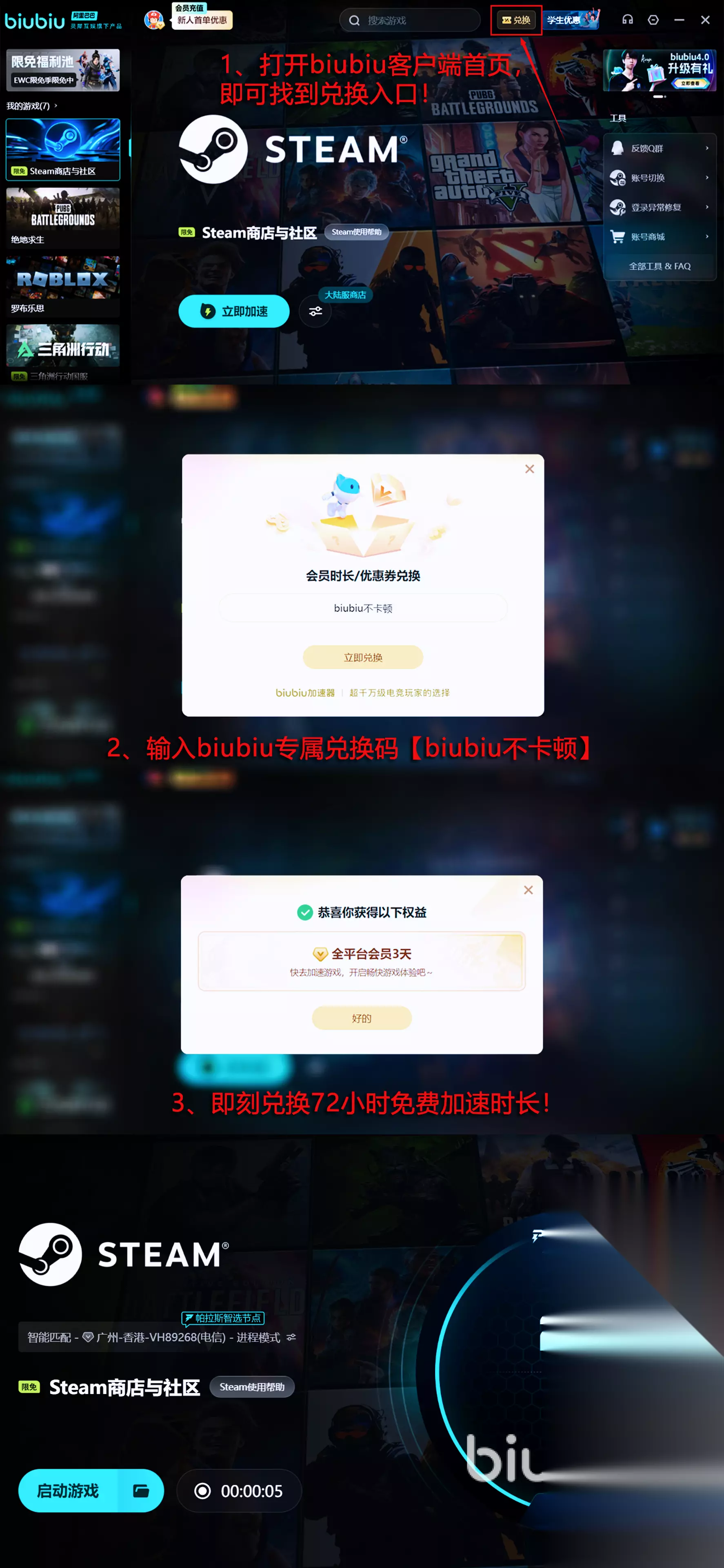 如果玩家们在战斗的时候感觉卡顿,操作延迟明显,大概率是由于网速不稳定导致,推荐使用biubiu加速器,能针对游戏联网场景提供优化,并且新人在注册后便获24小时免费加速,方便玩家先体验加速效果,新老用户使用兑换码【biubiu不卡顿】还可获3天免费的使用权。