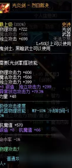 结果是显而易见的,想在马爸爸的游戏里赌脸还是有点难度的,而且袖珍罐开SS装备本身难度就极高,这个结果也是意料之中,有想法的玩家可以去试试,反正也不贵,万一开出来了还不是美滋滋,下面给大家看看光炎剑的属性吧,毕竟上古神器现在估计有一些萌新不怎么认识。