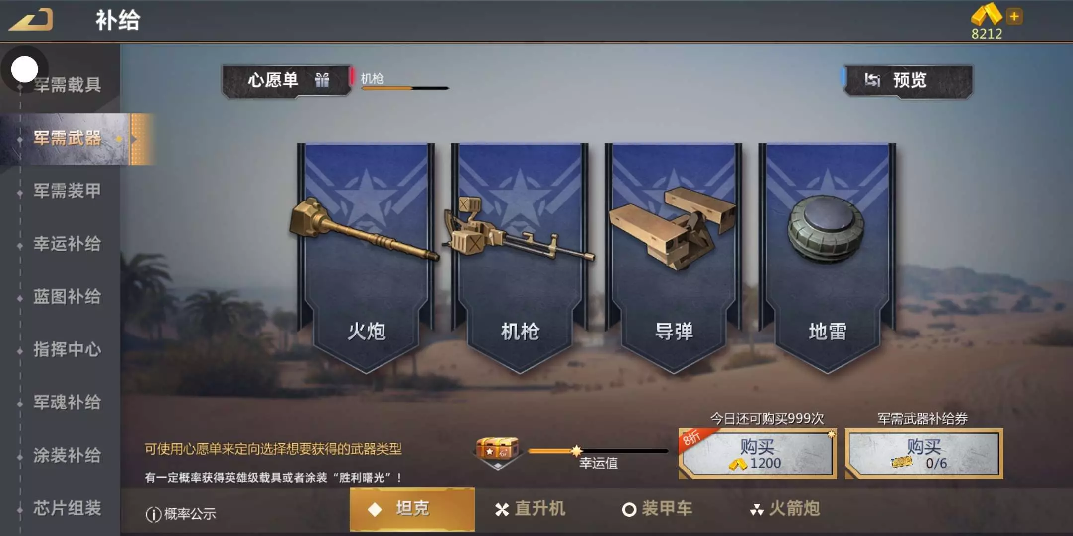 军需武器补给保底几轮出心愿单?