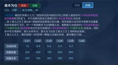 ②、一技能:有一个被动技能,那就是1.5秒生成一个萤火虫,一共10层,1技能的效果攻击队友会回复血量,消耗的就是萤火之虫的数量,攻击敌人,在原有伤害和击飞之后,再次受到萤火虫的攻击。