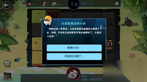 (2)弄坏的宝贝:男忍者拉喵喵会坏(需要两次),然后在后面会遇到老板娘承认就行(目前看来好像老板娘只会在20层以上出现,我这个是在21层) 制约很多小伙伴拿到这个事件的因素应该就是层数了,在21层才会出现,所以大家尽可能冲一下20层,找大佬拖一拖,然后就有机会遇到啦 14.从谷底爬出的小白: 似乎在第一层就会出现,(而且仅会出现一次?待考证),这里有两个选项,选择第一个或者第二个奖励都是一个金钥匙,第一个可能有ss卷轴。 这里有一个彩蛋:就是小白把打完boss后面那段路拆掉,所以现在忍者再不会被卡死在绳子下方了,算是变相用一个事件的方式修bug给补偿。