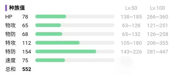 特性 1、花幕:我方的草属性宝可梦能力不会降低,也不会变为异常状态。 2、共生(隐藏特性):同伴使用道具时,会把自己持有的道具传递给同伴。 种族值