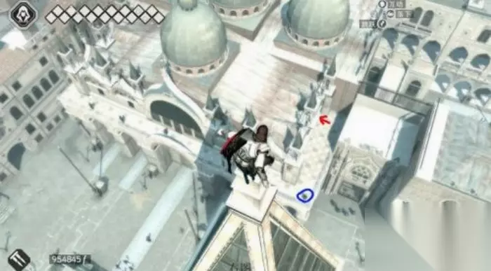 第五+六墓穴:威尼斯 同时拥有两个墓穴!因此同时列出了两个墓穴!左图的墓穴比较简单,就是在鸟瞰点(墓穴与鸟瞰点相叠)的塔往下望便是(二楼)!右图的墓穴也不难,也是在建筑物的二楼!此时主角站的位置就是建筑物正门对面的鸟瞰点!如 果实在找不到,可以来到前门!再看右图就可以了