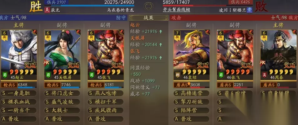 队中赵云的战法、兵书和加点和前面一样,SP吕蒙可用魅惑、三势。SP荀彧要用拓镇扼防拒、拓济贫好施,加点全智并带上三军、统军、锤炼。以上两种三势阵中,SP荀彧也可换成王元姬、SP皇甫嵩来暂时过渡。此外还有一种特殊的三势赵郭周,也就是用赵云、郭嘉加上周泰。赵云可带裸衣血战、摧锋,郭嘉用当锋、铁骑并配成1速智。周泰带虎豹、三势,兵书用三军、统军、锤炼并加点全统。这套容易被蓄势克制,因此赵云的兵书最好能选精准。