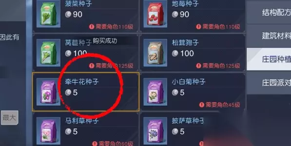 积分获取: 1、我们可以在庄园商店中点击庄园种植,然后找到对应的【牵牛花种子】。