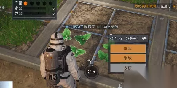 2、然后在庄园田地中,将牵牛花的种子种下,尽量浇一次水施一次肥。