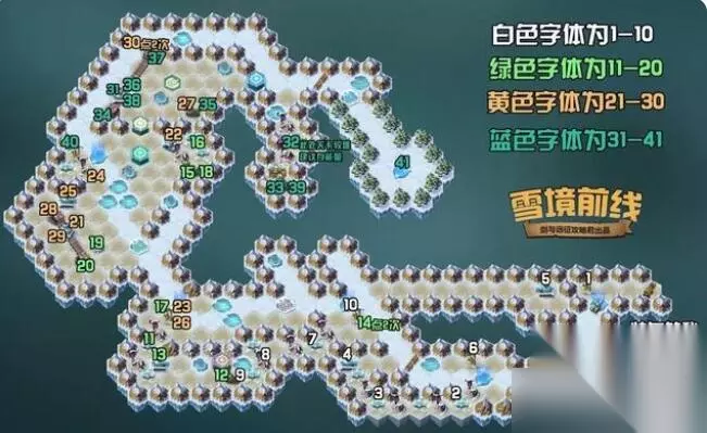 剑与远征雪境前线路线图攻略 路线图一览: 按如图所示的数字顺序,点击过去即可通关