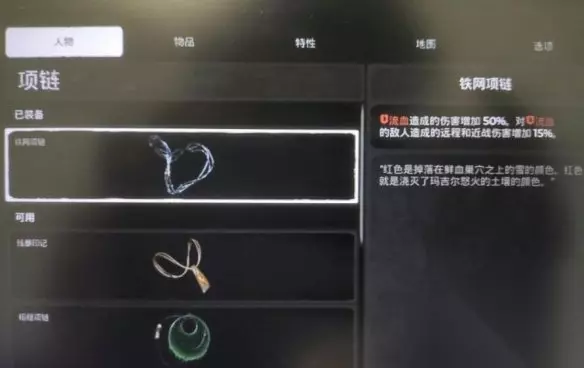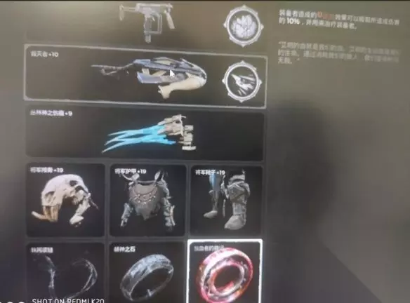 这是关键饰品的图。 核心思想是破坏者的流血特性和高额伤害配合流血者的徽记提高恢复效果以及将军套自带生命偷取。项链能使我们对流血的敌人有BUFF效果。看数值好像效果不理想,但实战效果是惊人的。