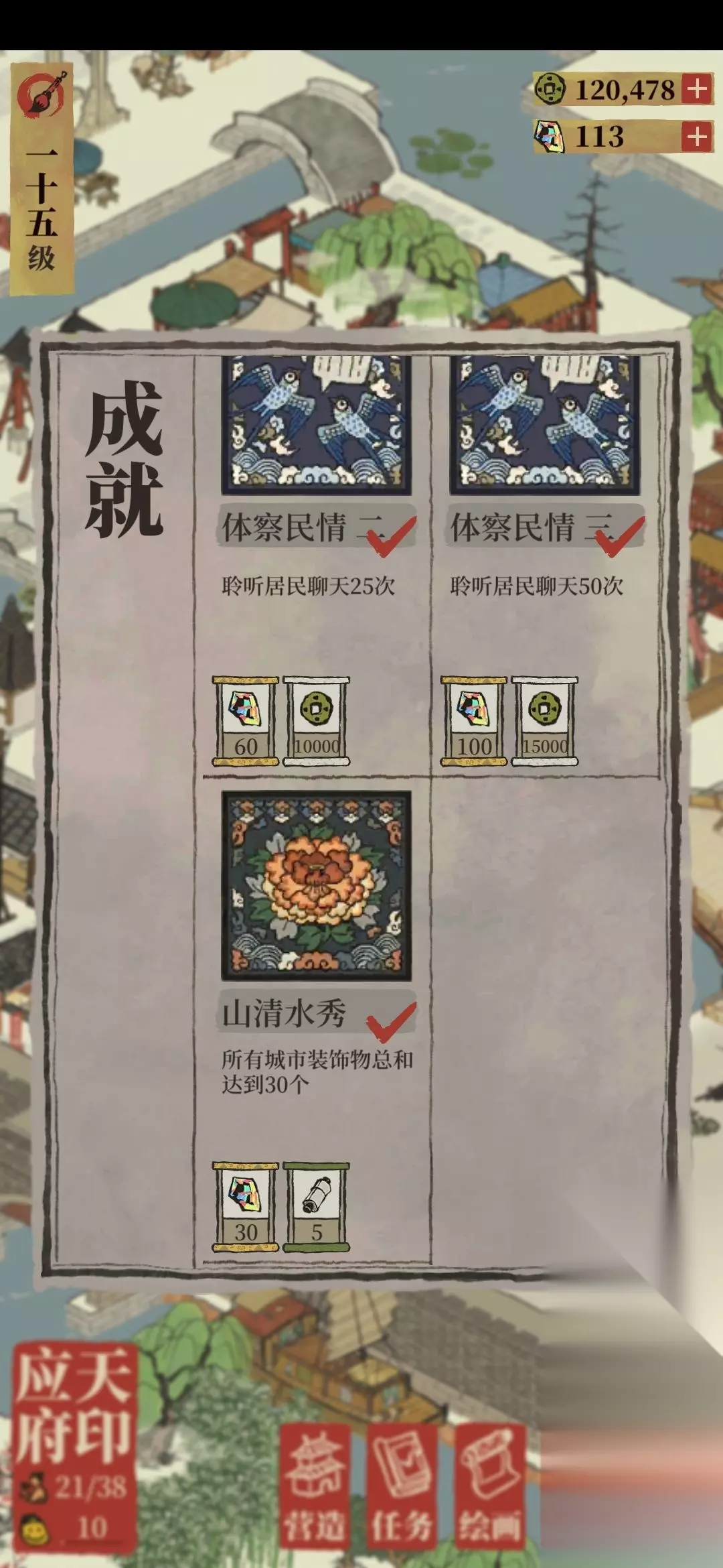 第五种:完成任务-成就 任务一般会送少量铜钱,大头是“成就”里面,有的一一项成就能送一万多铜钱。
