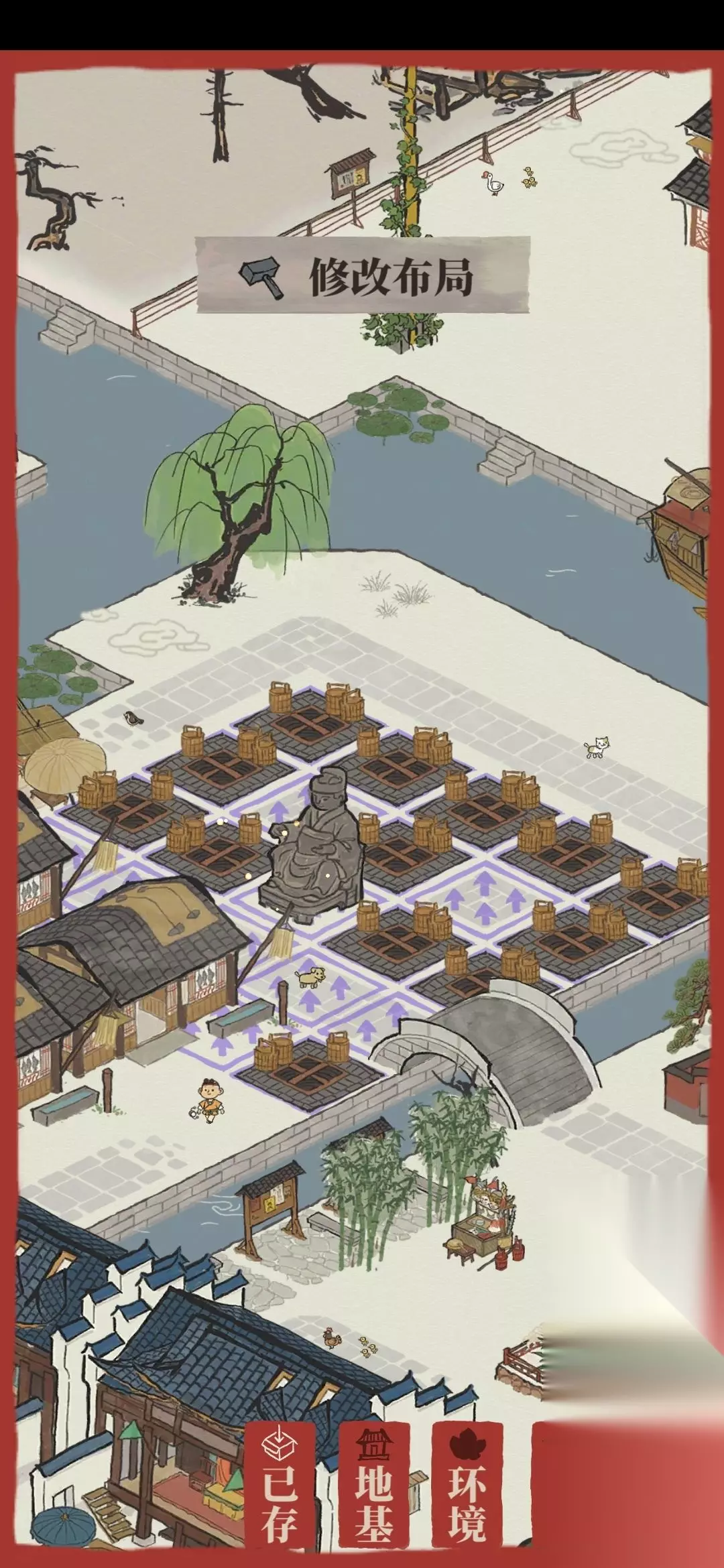 无论是哪款模拟经营类游戏,赚钱都是重中之重。在《江南百景图》这款游戏中也不例外!有了钱你才能继续建设,才能继续发展!才能解锁下一个篇章,才能赚取更多的钱!我们来看下到底怎么赚钱呢? 第一种-水井 注意要把水井尽可能多的布局在神像祝福的范围内,这是我觉得在保证厨房能用的前提下最佳水井布局,如图13口井。