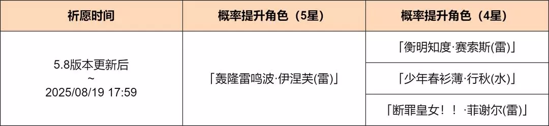 ●活动期间,限定5星角色「轰隆雷鸣波·伊涅芙(雷)」的祈愿获取概率将大幅提升!