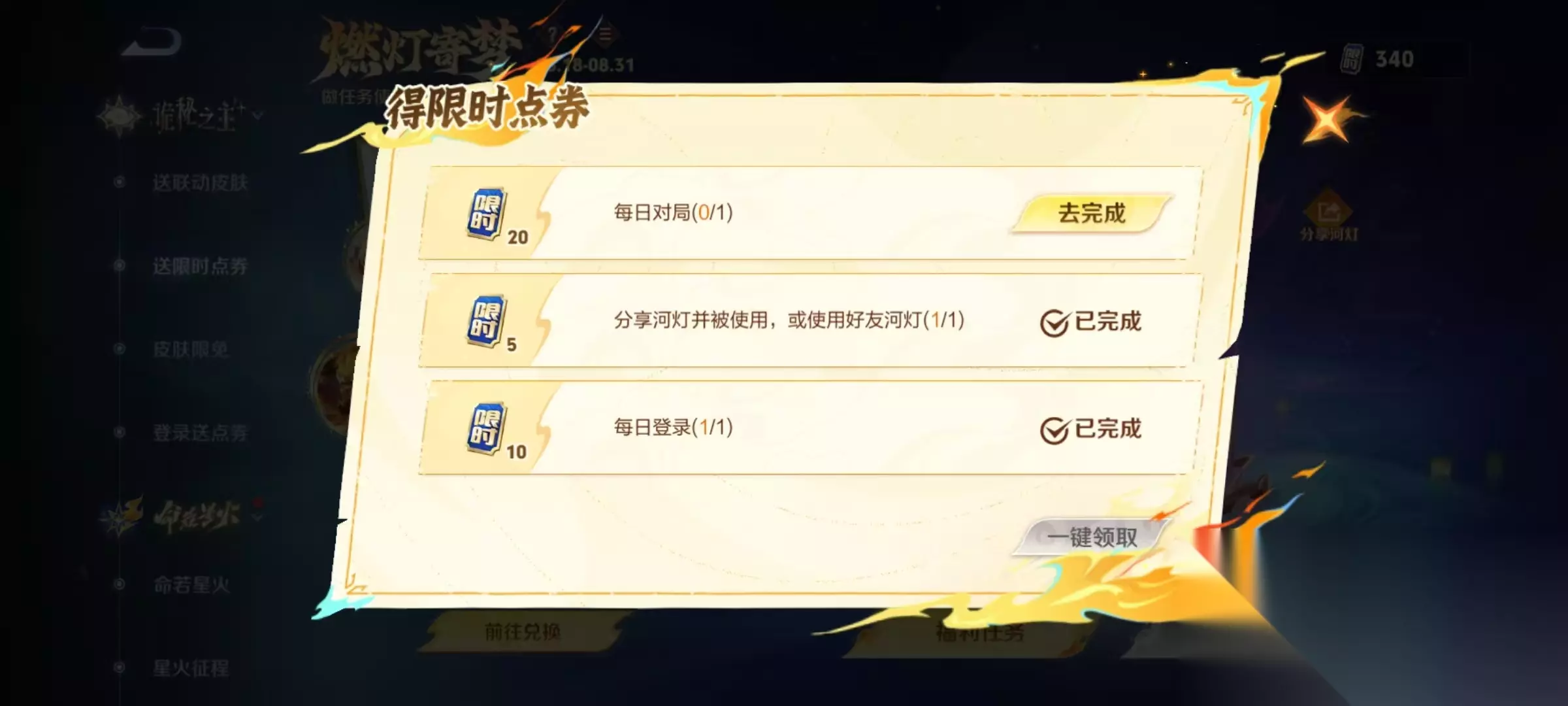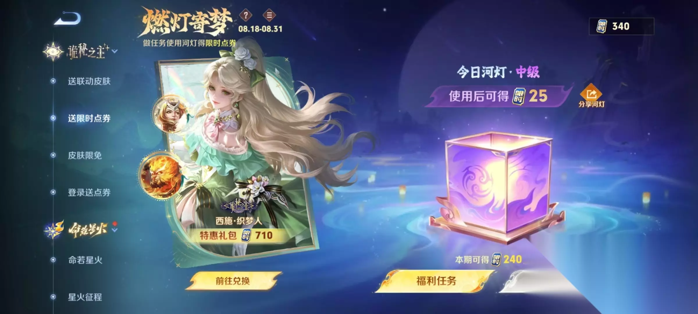 2、参与燃灯寄梦活动,每日任务可以得35限时点券。