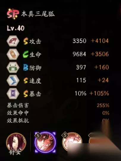 阴阳师本真三尾狐技能 本真三尾狐面板 攻击:S 生命:C 防御:B 速度:S(115) 暴击:S(10%)