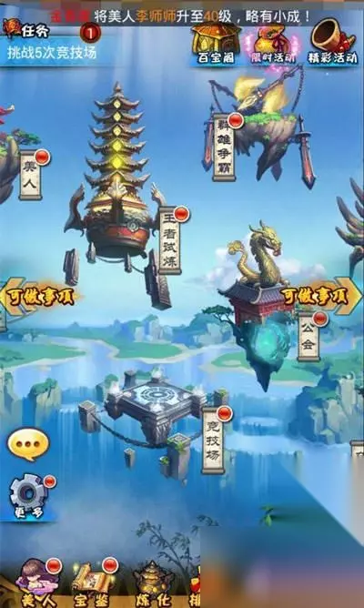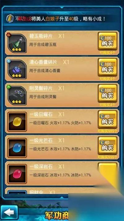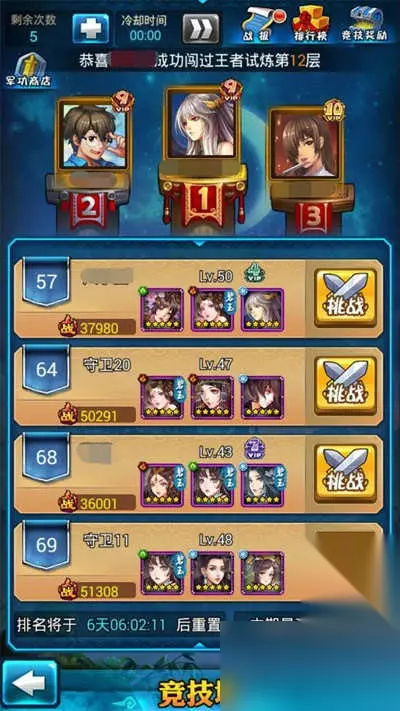 玩家每天有5次免费的竞技场挑战机会,可以通过与其他玩家对战并取得胜利来提升自己的竞技场排名,同时可以获取大量战功。获取的战功可以在左上角的军功商店兑换法宝碎片、宝石、经验书、扫荡令、招财令等道具。
