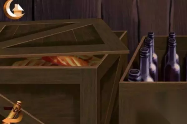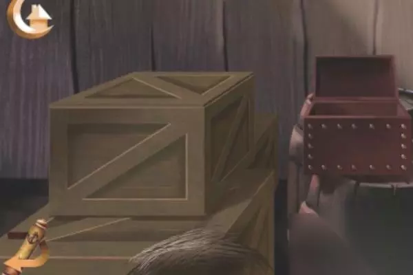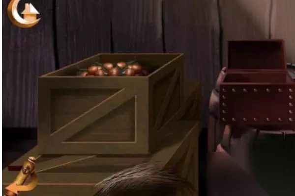 7、桌子上面拾取撬钩工具,再用撬钩工具去撬开木箱子,如图所示。