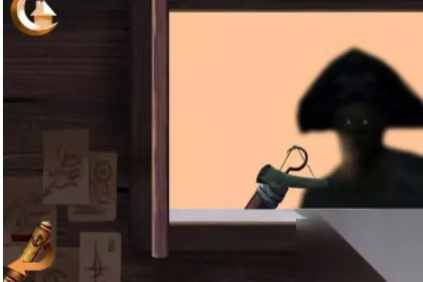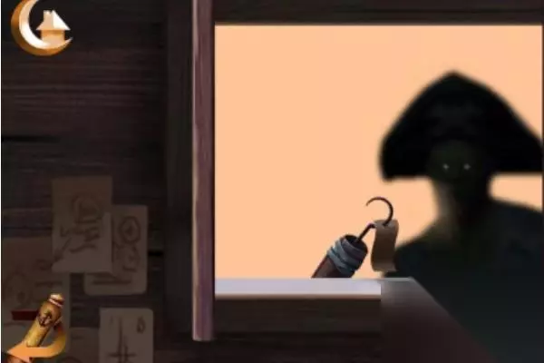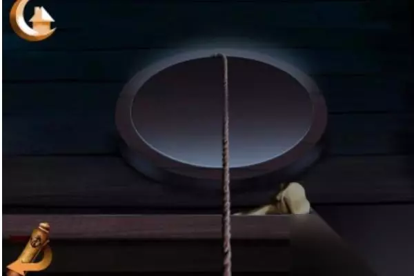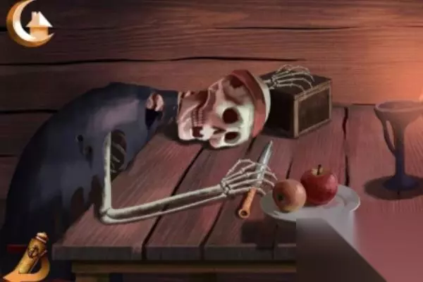 1、开始游戏,进入关卡1,拾取骷髅手上的刀,再用刀去切断绳子,如图所示。