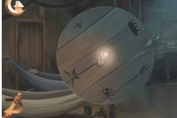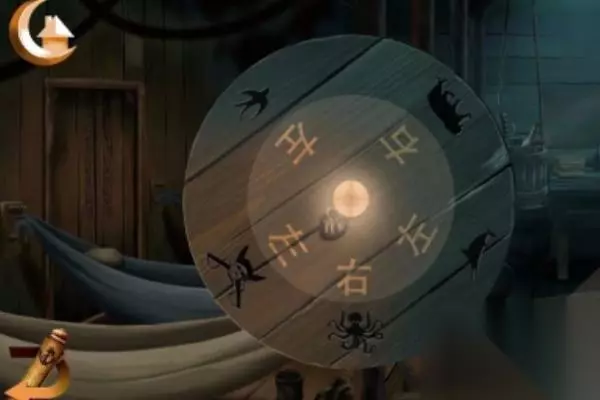14、再跟书本的图案,跟桌子上面的图案,连接起来会得到新的提示,海盗1左,章鱼2右,鲨鱼3左,小鸟4左,老虎5右,如图所示。