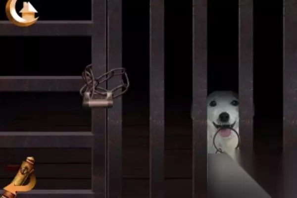 4、在上面拾取骨头,到门口,吹口哨,再骨头进去,获得钥匙来开门,如图所示。