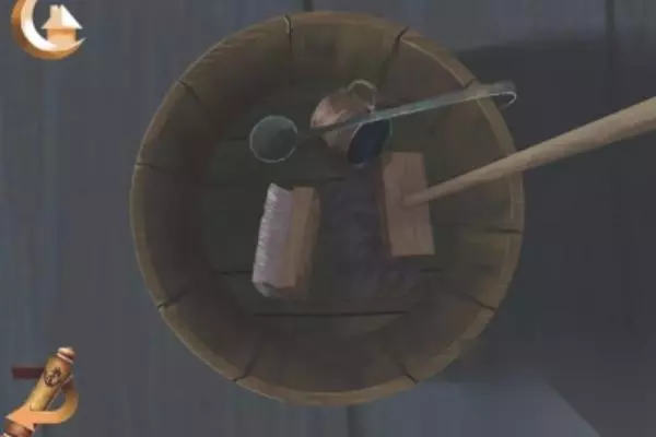2、在桶里拾取刷子,再用刷子去擦拭掉墙上的灰尘,获得密码。