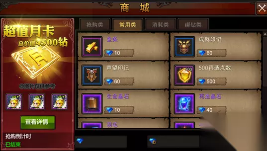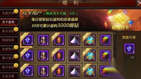 《全民奇迹》新福利 [首发月卡:价值超高诱人福利] 对于大部分玩家来说,购买月卡是一种非常超值、实惠的消费方式。 新版本推出以后,充值界面中将增加“购买月卡”的档位。玩家仅需充值45元,便可购买一张长达30天的福利月卡。拥有这张月卡以后,玩家每天都可以在福利界面中的“月卡返利”标签下领取一份超值的游戏道具及钻石。 自购买月卡当天起,玩家可在30天中累计领取900钻石(非绑钻)和价值3000多钻石的珍贵道具。其中包括:成就印章、声望印章、精灵猎取代券、彩色羽毛、祈福代券、元素粉末、灵晶等。心动不如行动,赶快来体验一下吧!