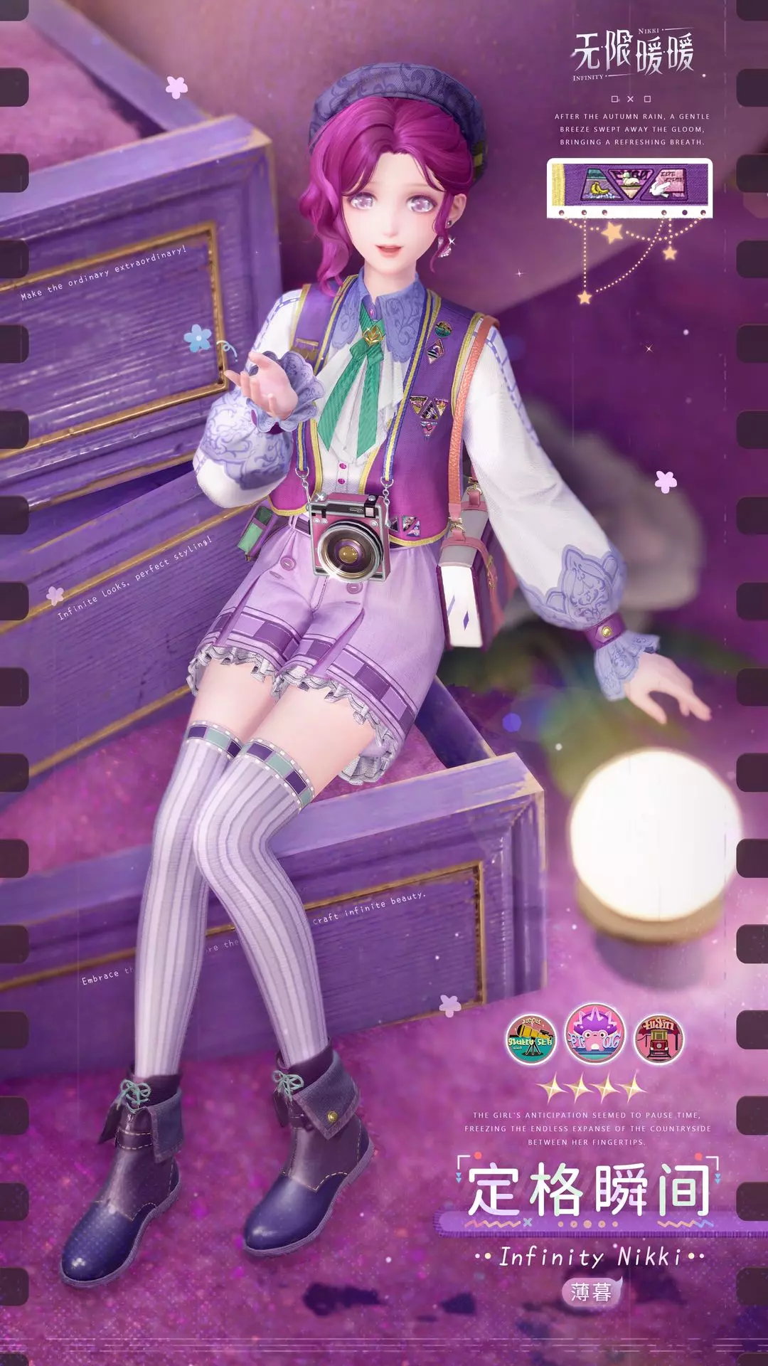 「定格瞬间」进化后为套装「定格瞬间·花海」。套装焕新完成后可获得「定格瞬间·薄暮」。