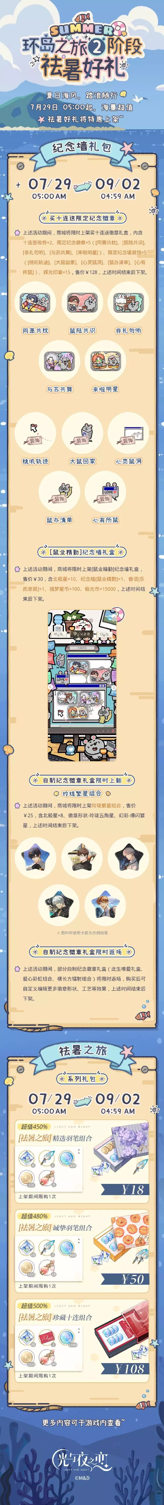 ◆7月29日 05:00 - 9月2日 04:59期间,商城将上架更多[祛暑之旅]系列特惠礼包,上述时间结束后下架。