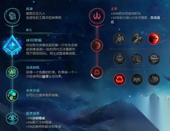 我们可以在副系当中看到选择了精密系和巫术系带来的加成是不同的这套带来了超高的攻击力加成.也提供了移动速度.只是攻击速度偏慢.不过有E技能的加成也是可以接受的 放上这套符文是为了让大家知道新版本不需要固定什么.怎么想的就去大胆实践吧 灵活游戏。 另外在符文当中.五种类别只有在主系选择启迪时所带来的副系属性是不同的!
