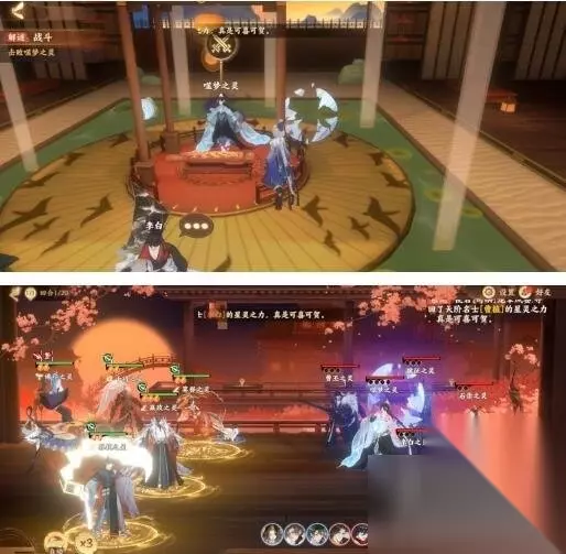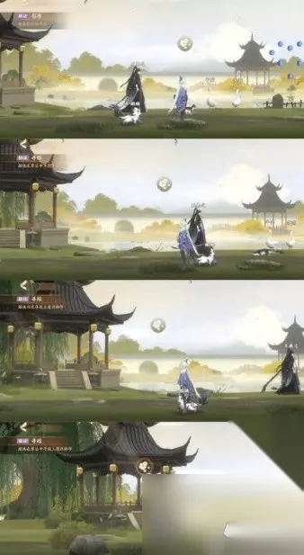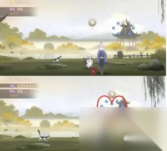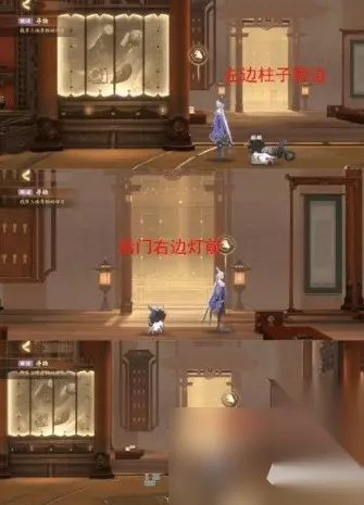 清除喵灵身上的恶灵之气-规律是点击该喵灵会改变它和它周围喵灵的状态,初始是布偶和奶牛冒黑气 依次点击:橘猫-狸花-布偶殴打魇化鲶唢呐-打开灵瞳猫眼-完 华胥之绢解谜任务攻略 1.首先进入奇遇,前面的内容就跟其他的奇遇相差不大,一路按照任务提示,就可以进入曹植的梦境! 2.但当进入梦境之后,各位使君大人赖以过关的任务提示就没法用了,这时我们需要先跟曹植大人对话。 3.曹植大人会先让我们检查左中右三块屏风。屏风位置如下: 4.对话完之后,曹植会拜托我们寻找毛笔,毛笔的位置如图所示。 5.之后再去跟曹植互动,蘸取他面前的颜料后,他会叫我们帮忙修复中间和右边的屏风,修复的同时按照正常流程走,我们会获得3种可以制成颜料的素材石。(一开始获得的墨色只能画下图圈起来的两块位置) 6.修复完两块屏风之后,系统会提示我们搜集三块碗的碎片,三块碎片的大致位置如图所示。 7.搜集完三块碎片,回到1号位置,同时,可以将三块碎片合成,合成之后,2号位置会出现一个可以使用的物品。(同时此块区域还有一个可以收集的颜料原料)点击使用后,可以将我们目前拿到的四种原料,制作成四种颜料。 8.获得四种颜料后,先回到曹植的桌子前,会有对应的三个小碟存放三种颜料,存放完毕后,每次蘸取一种颜料,去到中间和右边的屏风,进行上色。 9.在上色过程中,我们会获得一个水壶、木炭和集中颜料原材料,水壶去到1号位置灌满水后,木炭和灌满水的水壶都可以放在2号位置,同时也是后续几种颜料进行制作的工具。 10.后续获得几种颜料原料可以在2号位置制作成颜料。然后和之前制得后但还没有放在碟里的蘸料一起放置在3号位置,每一次蘸取一种颜料后,到对应的屏风前进行上色即可。 觅鹅踪解谜任务攻略 这个关卡任务其实很简单,王羲之养的三只鹅走丢了,我们得帮他找回来。
