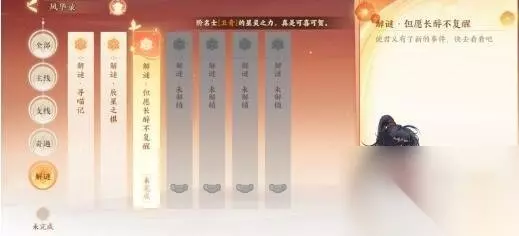 忘川风华录解密任务中是游戏中的玩法之一,其中就有琴徽盒子密码、星辰之棋、信物、寻猫、鸣之琴、华胥之绢、觅鹅踪解谜、但愿长醉不愿醒等,本站小编为您带来忘川风华录解密攻略大全汇总。 忘川风华录解密攻略大全 忘川风华录辰星之棋解谜攻略 进入途径:主界面-风华录-解谜(进入解谜模式后) 棋谱部分: 与李淳风对话-寻找苍龙棋谱-左走探查下图的罐子