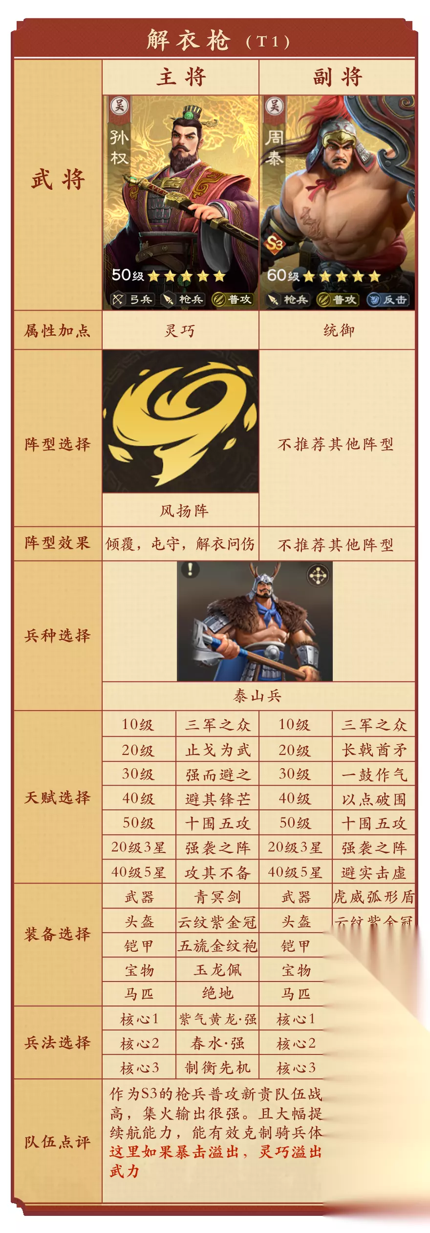 各位主公好!本篇攻略给主公们带来S3的高战五队共存。 新赛季新增了袁绍、陆逊、周泰三位新武将,同时加入了全新阵法虎翼阵,因此队伍较S2有了更强的共存组合。此外,驯马系统的加入也为队伍搭配提供了更多可能性,让主公们能探索出更丰富的组合。 军政搭配 · 骑兵系:点出进阶技能,配合张辽曹仁的八门逍遥骑;