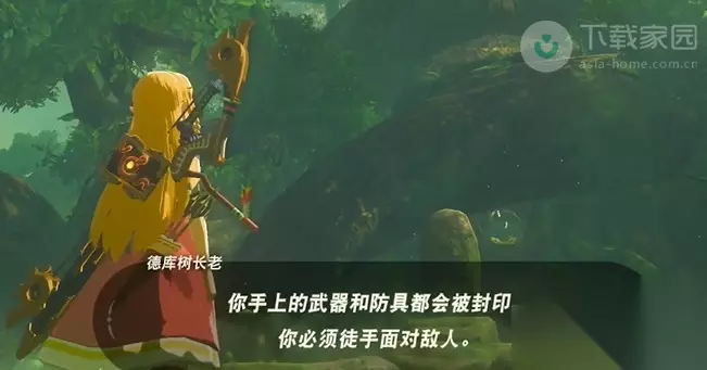 塞尔达传说王国之泪剑之试炼初阶任务怎么做 剑之试炼初阶任务完成步骤: 1、首先前往下图的位置,找到并与德库树长老对话,之后将大师之剑插入进去,即可进行传送;