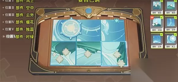 原神恒动械画拼图攻略分享 1:这个其实很简单,我们首先需要完成六个恒动械画的部件复原,然后我们和npc进行对话,对话完成之后我们就可以看到有一个拼接的选项了; 2:进入之后就是下图的样子了,然后你们要按照小编提供的部件名称进行摆放; 位置一,摆放部件风上; 位置二,摆放部件空中; 位置三,摆放部件云外; 位置四,摆放部件缀花; 位置五,摆放部件独蕊; 位置六,摆放部件衬绿;