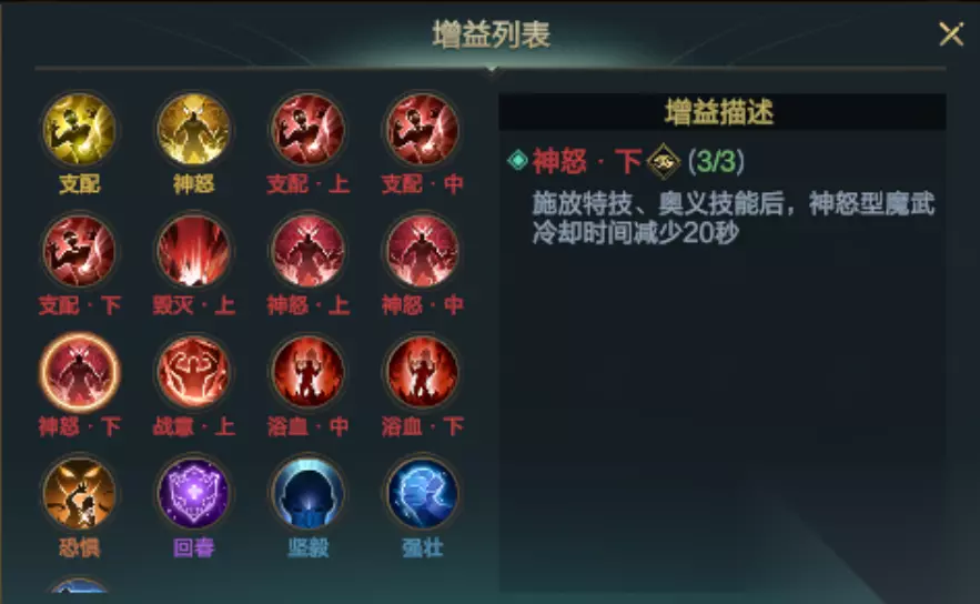 增益选择优先级:优先选择「神怒」(减少冷却)、「战意」(击杀产生爆炸)「毁灭」(腐蚀伤害)「支配」(低血量斩杀)这几个是比较好用的选择! 轮回装备 每周必做 + 养成攻略