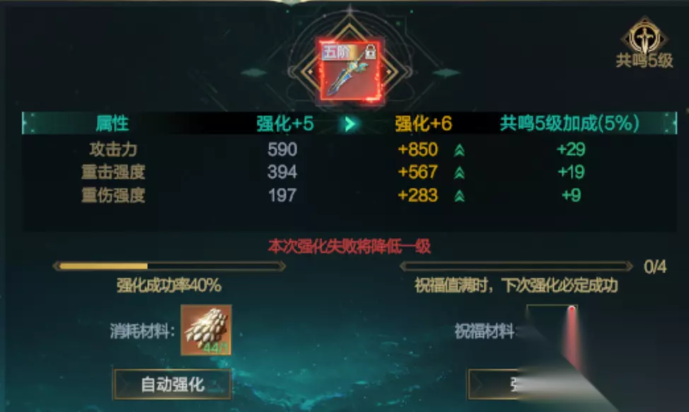 · 材料需求:主材料「圣龙之鳞」(轮回试炼中获取,也可使用绑定魂晶购买),强化 + 5 后成功率下降 · 祝福道具:「圣龙之心」必留!强化失败时等级不掉(高强化后必备);「圣龙之角」在成功率低于 50% 时使用(直接加 20% 成功率,性价比拉满) · 共鸣加成:同部位装备强化等级相同激活共鸣(比如全身 + 8 激活 8% 基础和强化属性加成),建议优先平均强化,别单怼一件 2. 合成系统:结晶循环利用
