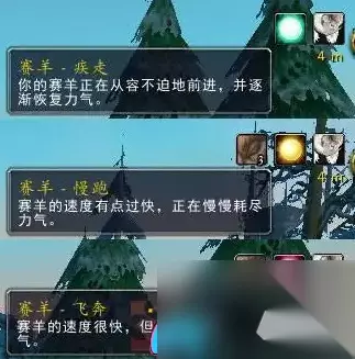 一、赛羊 1.此任务旨在帮助玩家熟悉赛羊的操作技巧。 2.玩家需驾驭自己的赛羊,在四分钟内,保持疾走、慢跑与飞奔的状态各持续8秒。 3.完成后,即可顺利解锁赛羊的前置任务。