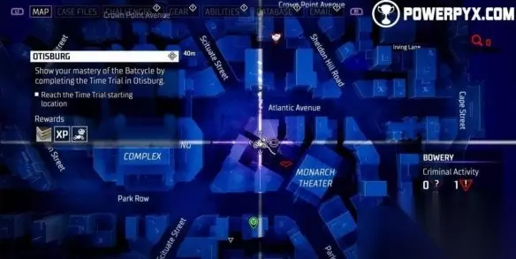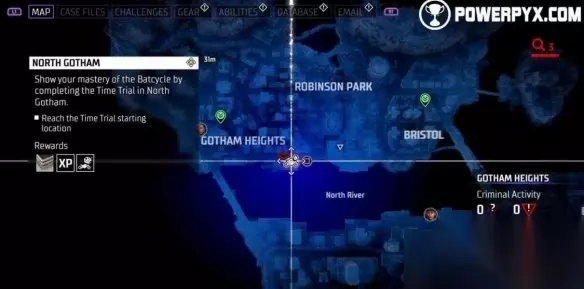风驰电掣奖杯攻略 所有蝙蝠摩托竞速挑战位置 北哥谭:完成主线案件03后解锁。