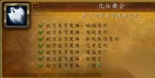 四、pvp成果: 1、排南海镇战场,完结之后会取得糟糕万圣节成果 2、运用侏儒甘旨养分糖,然后在战场上取得50次的荣誉击杀,就能取得侏儒甘旨养分糖之怒成果 五、其他成果: 1、化妆舞会成果。需求玩家们运用7种不同的变身棒。