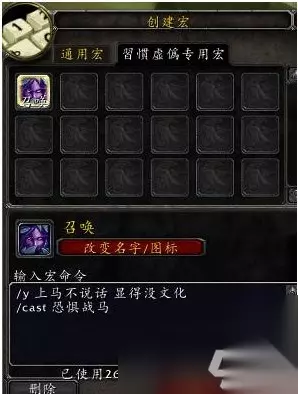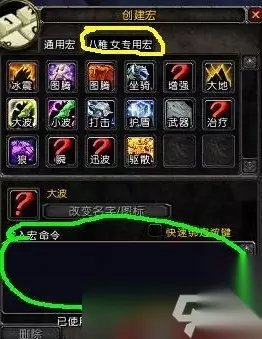 如果你就是一个角色,选择哪个都无所谓。 然后,新建(最下面),选择一个自己喜欢的图标,或者直接选择问号。 起个名字。 然后回车,在下面的文本里面输入宏语句。