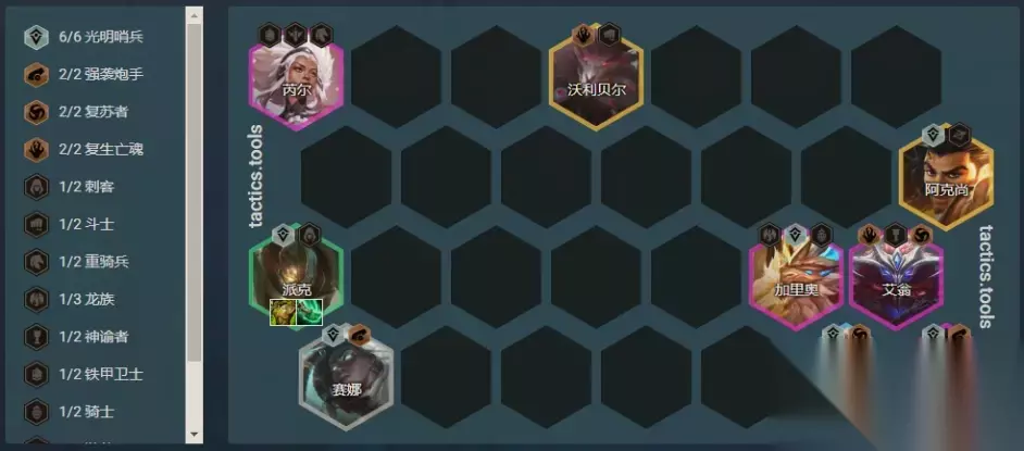 过渡方式:速升7级或8级; 开局散件:攻击型装备; 阵容链接:控制流六哨兵; 核心单位:卢锡安/阿克尚二选一; 推荐装备: 1.治疗装:光明饮血>饮血>光明正义>正义>复活甲; 2.输出装:杀人剑>轻语>泰坦>无尽>法暴>羊刀>飓风; 3.复活甲:一般情况下,第三件装备是输出装。但仅对卢锡安而言,但若可以有复活甲或者光明复活甲,则会有奇效,在面对小恶魔、丧尸系列、大眼系列等阵容,我们阵容的胜率和容错率会大增; 控制六哨兵的核心思路 控制核心单位:派克:青龙刀+狂徒(可有可无); 游戏后期进阶:卖掉派克的狂徒,给到阿克尚,进一步提升阵容输出; 其他控制单位:芮尔、小菊、狗熊(按照7/8/9人口的顺序上场); S-级阵容:黑夜亚索