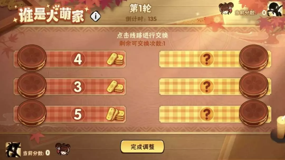 匹配成功之后,忍忍可获得猫咪、狗狗、忍者3种萌物各4个,以及代表不同分数的3条战线。每一回合中,忍忍拥有一次改变战线排布的机会,可通过点击线路进行位置交换。