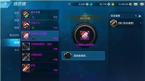 装备和徽章都齐了之后,就能在铁匠铺处进行徽章的镶嵌工作,在铁匠铺的功能选项中选择徽章,然后点击徽章装备,目标装备下方就会显示徽章卡槽,右侧是可以选择的白金徽章,选中想要镶嵌的徽章,点击确认就能镶嵌徽章。