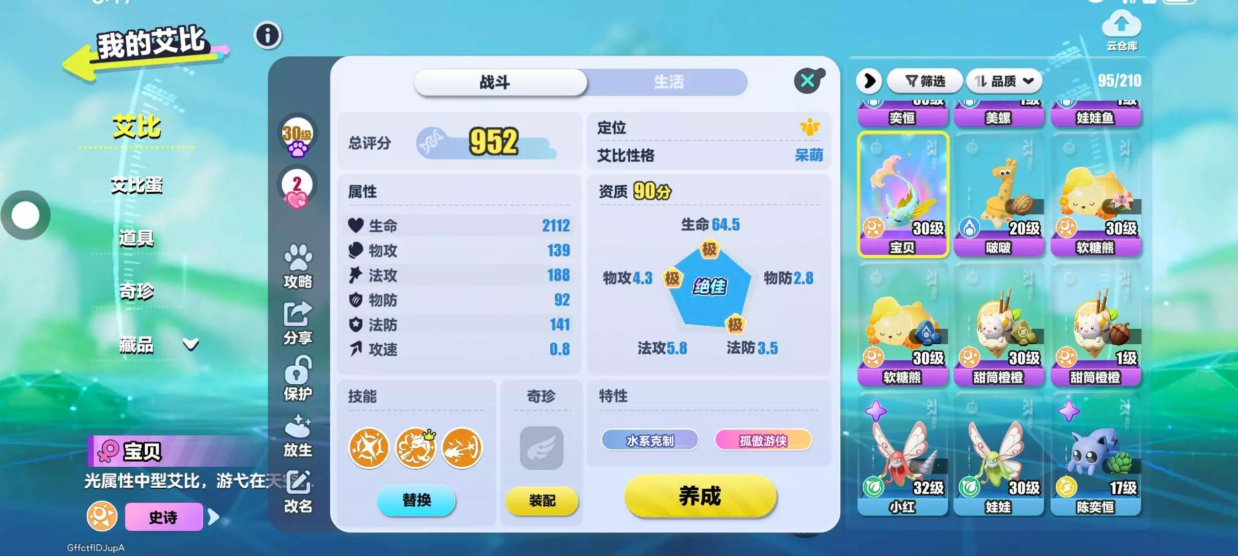 13抽出的 88分 喂了个果子就彩光了 去探险还发现一直隐藏异色