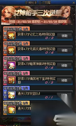接下来就是预约也好,选择现有职业参与也好,活动目标和奖励都是相同的了。 玩家们完成指定的目标,获得相对应的奖励,奖励目前只有一种,累积完成任务获得奖励。 所有的奖励为:4个传说装备自选礼盒,+20所有属强首饰附魔宝珠1个,特殊装备宝珠自选礼盒(强攻/协力),100级袖珍罐(随机),时间引导石200个。 以上就是本次女枪三觉预约奖励内容了。 好礼天天见